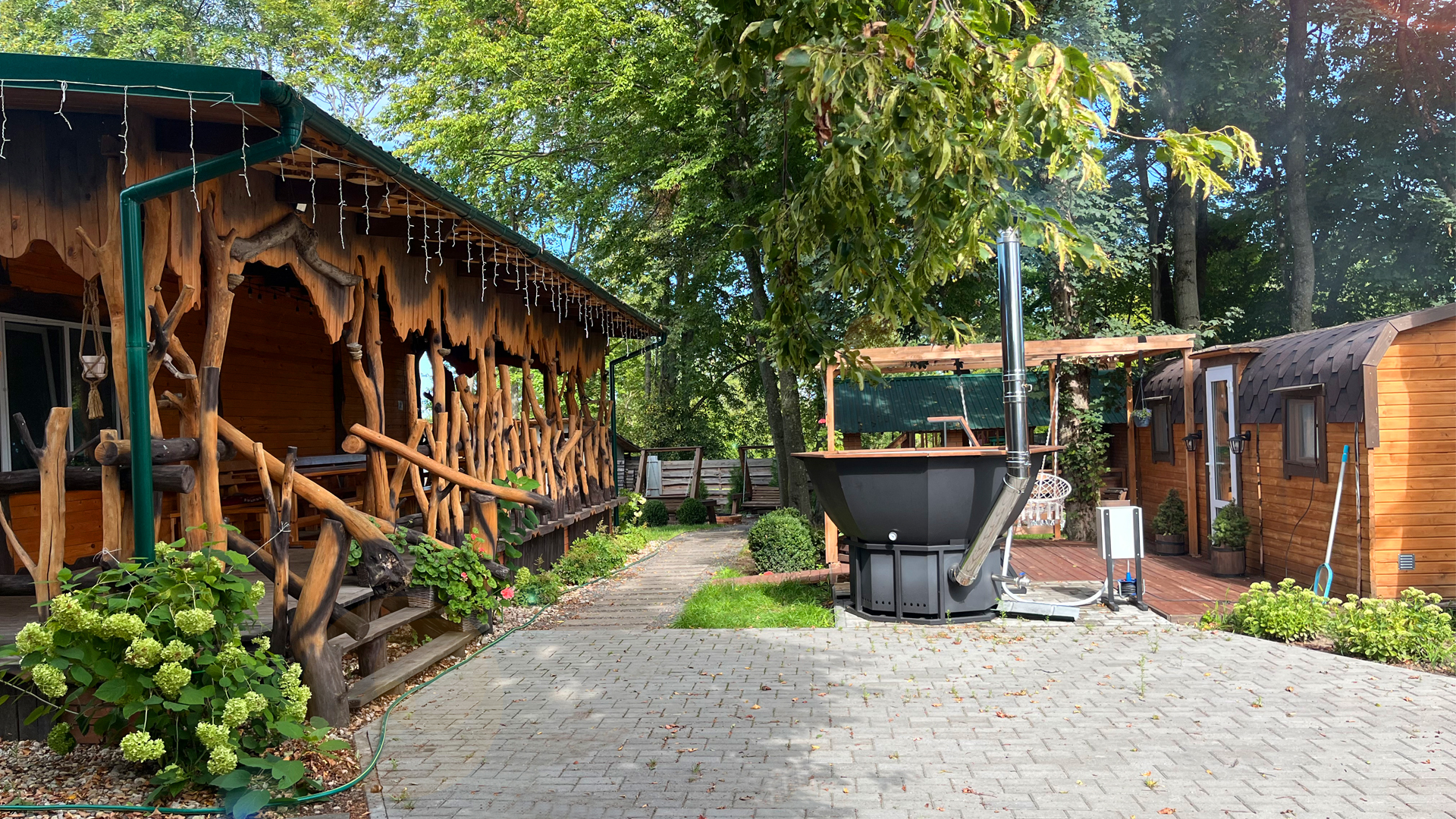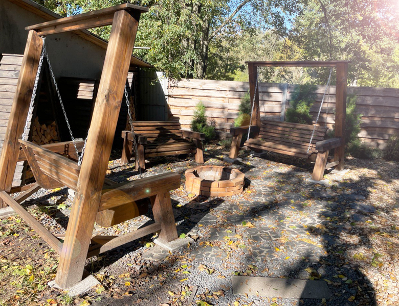 Почему бы не провести приятный теплый вечер на удобных качелях и вокруг настоящего костра?