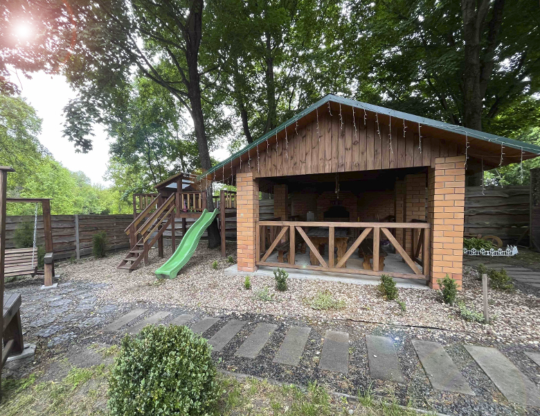 Беседка шале для приятного отдыха! Мангал, решетка, казан для готовки любых блюд в вашем распоряжении!