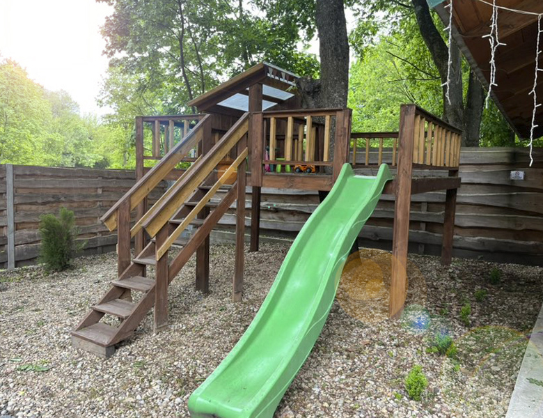 Площадка оборудована горкой, качелями и разнообразными игрушками. У нас Ваши дети найдут чем заняться!
