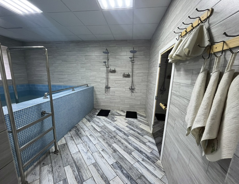 Окунуться в прохладную воду после бани, легко! При выходе из бани, Вас ждет бассейн и душевые!